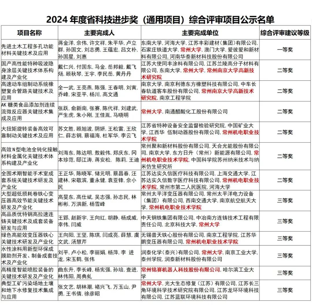 近日,江苏省人民政府网站发布了《省政府关于2024年度江苏省科学技术奖励的决定》,常州科教城共有13个项目荣获科学进步奖,其中一等奖1项、二等奖6项、三等奖6项,创历史最佳成绩。
