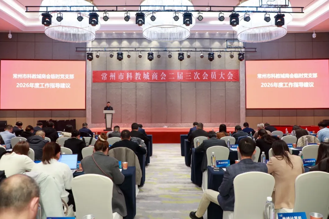 1月16日,常州市科教城商会二届三次会员大会暨二届五次理事会隆重召开。会议全面总结了2025年商会工作成效,擘画2026年发展蓝图,完成领导班子和新理事调整等重要议程,为商会高质量发展注入新动能。