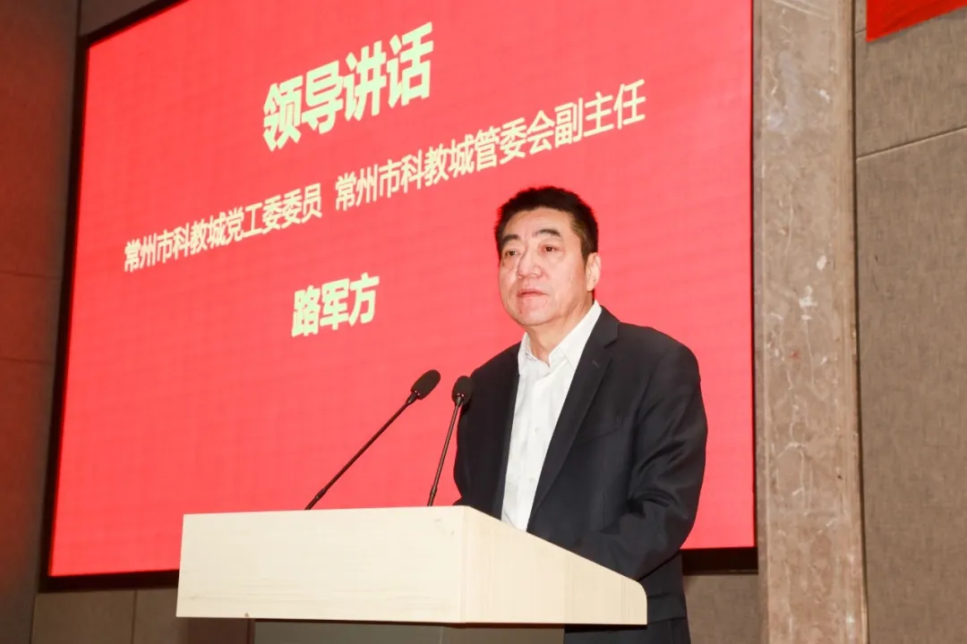 常州市科教城党工委委员、管委会副主任路军方在会上讲话。路军方指出,2025年科教城商会以"服务创新"为椽笔,以"党建引领"为翰墨,始终与时代同频共振,与科教城同向而行,与企业家同心筑梦,在服务会员、链接资源、反哺社会的征程上,写下了"有高度、有温度、有力度"的答卷,用实干笃行诠释着"商会姓商,更姓家国"的赤子情怀,商会是科教城高质量发展的"奋楫者"。他强调,2026年商会要以党建红引领发展蓝,做政治坚定的"领航者";以服务优赋能创新强,做企业成长的"护航者";以责任重彰显情怀深,做产学研融合的"示范者"。要讲好科教城企业的创新故事、企业家的担当故事,让"科教城企业家"成为常州最闪亮的名片。