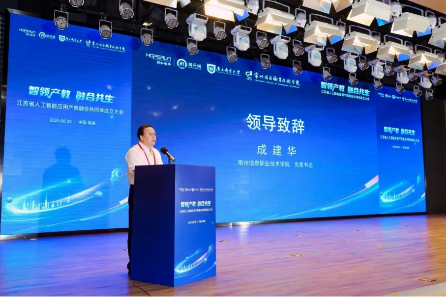常州信息职业技术学院党委书记成建华在致辞中强调,作为理事长单位,学院将充分发挥在信息技术领域的办学优势,深度整合“双高计划”建设资源,全力推进人工智能领域的技术攻关、人才培养和产业服务。成建华表示:“常州信息职业技术学院将以此为契机,打造产教融合新范式,为江苏建设全球领先的'智造之省'提供强有力的人才支撑和技术支持。”