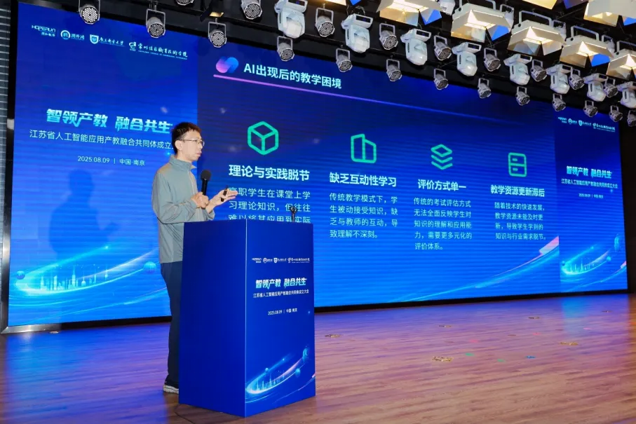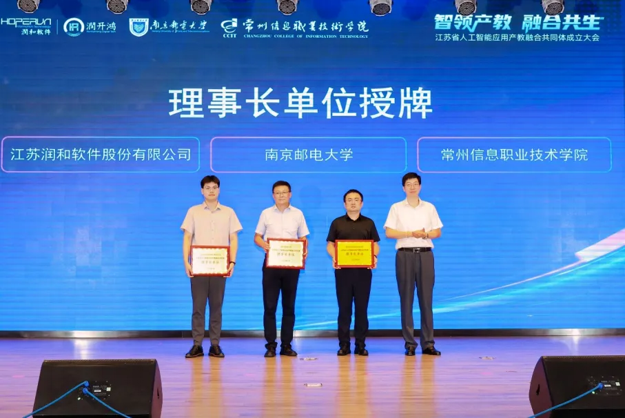 8月9日,江苏省人工智能应用产教融合共同体成立大会在南京成功举办。本次大会由江苏省工业和信息化厅、江苏省教育厅指导,江苏润和软件股份有限公司、南京邮电大学、常州信息职业技术学院共同主办,汇聚“政、产、学、研”力量,共绘区域人工智能产业升级蓝图。