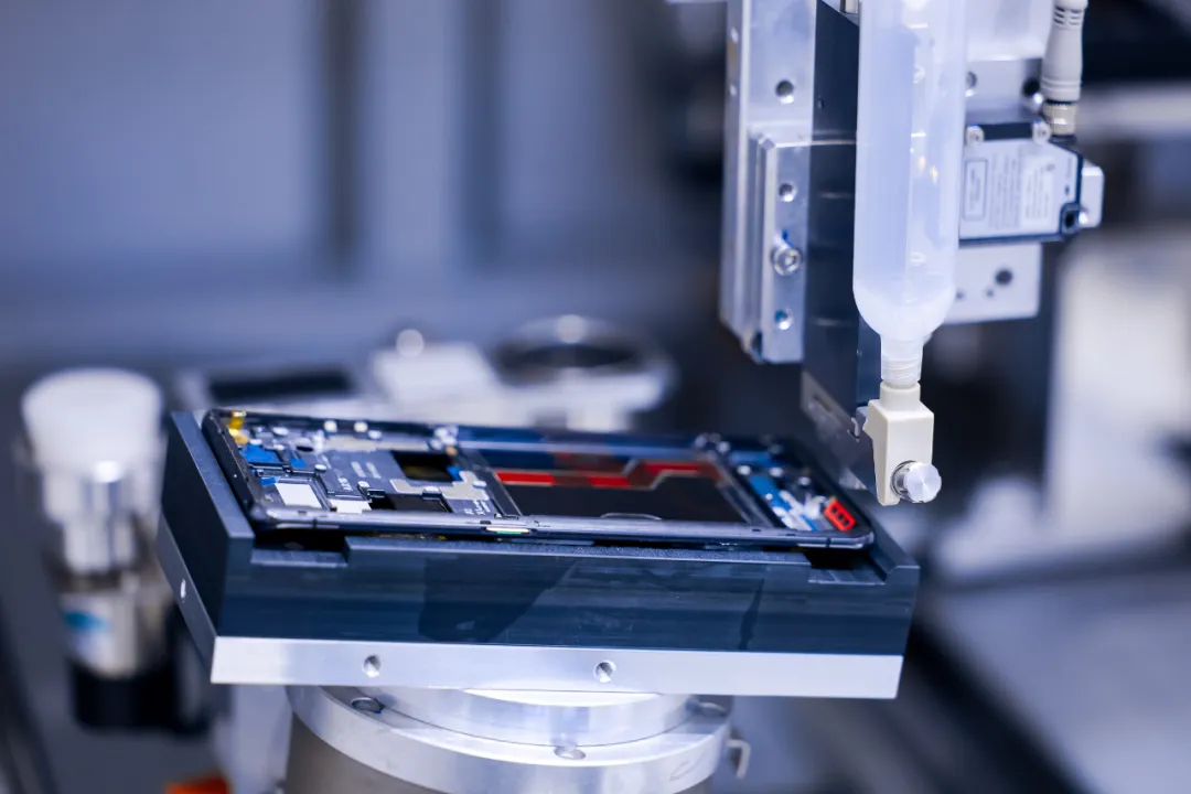 五轴联动点胶机PD500D专为手机中框、VR/AR边框、TWS壳体等异形曲面点胶开发,支持空间圆弧、椭圆及渐开线插补,实现复杂三维曲面的高精度涂布与密封。