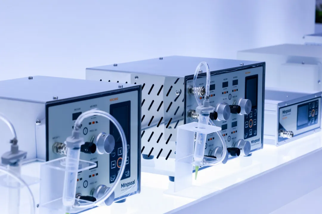 核心部件展区,KPS系列压电喷射阀的高频精准控制能力可实现微米级点胶;KDC系列点胶控制器采用高度集成化设计,可实现多通道点胶;KDP/KSP系列偏心式螺杆阀适用于微流量胶体的高一致性涂覆;KSV系列同心式螺杆阀则专注于中小流量流体的高稳定性输送。这些核心单品的展示,体现了铭赛科技在精密点胶领域的深厚技术积累,以及快速响应客户需求的能力。
