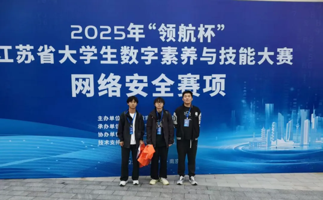 近日,2025年“领航杯”江苏省大学生数字素养与技能大赛决赛举办。常州信息职业技术学院网络安全大师班,由杨雄老师指导的丁瑞、董智雄、赵昱杰三名同学在网络安全赛项中荣获省特等奖。