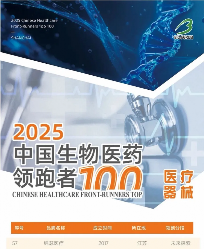 近日,锦瑟医疗入选"2025中国生物医药领跑者(Front-Runners)100榜单",获评医疗器械领域"未来探索"阶段企业。