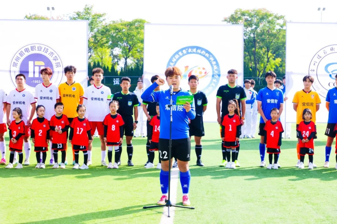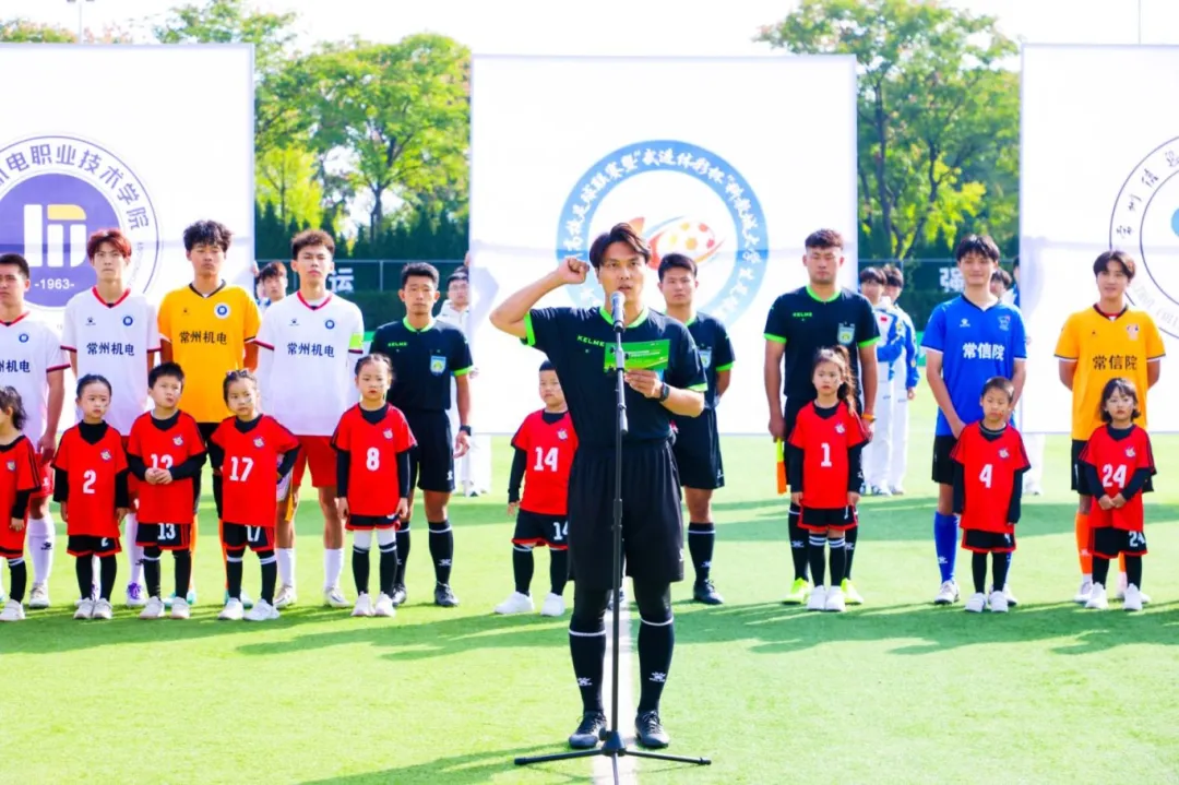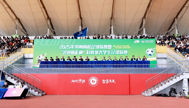 10月25日上午,2025年常州高校足球联赛暨“武进体彩杯”科教城大学生足球联赛在常州机电职业技术学院隆重开幕。科教城内六所高校足球代表队齐聚绿茵场,共同迎接这场属于常州高校的足球盛宴。 政校联动,共启赛事华章 开幕式现场,常州市、武进区及主办单位的有关领导亲临现场,与各高校师生、广大球迷朋友共同见证了这一激动人心的时刻。