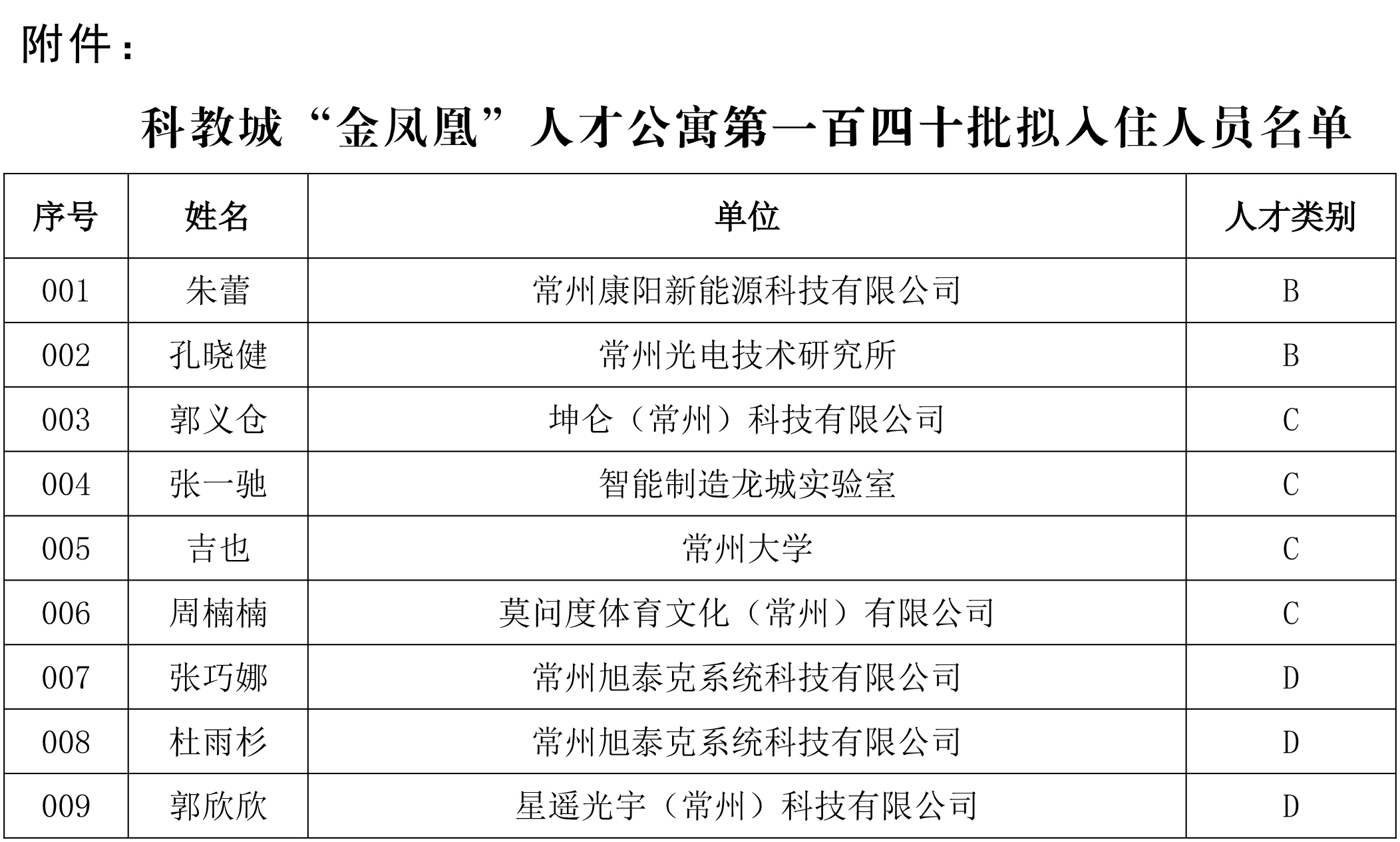 | 关于科教城第一百四十批高层次人才拟入住“金凤凰”人才公寓名单的公示 |