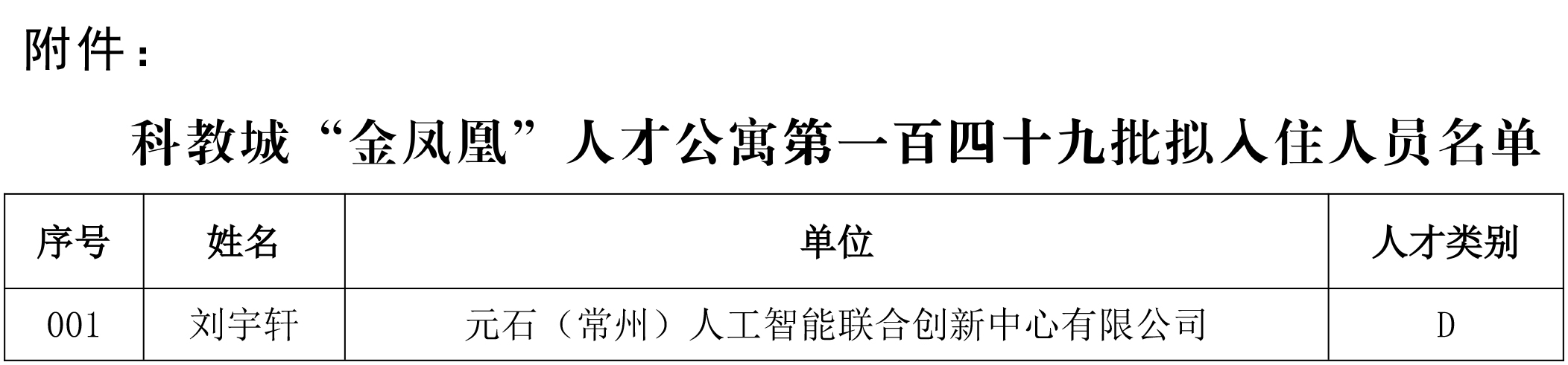 根据《科教城“金凤凰”人才公寓入住政策》有关规定,经相关部门审核,现对第一百四十九批拟入住人才公寓人员情况予以公示。